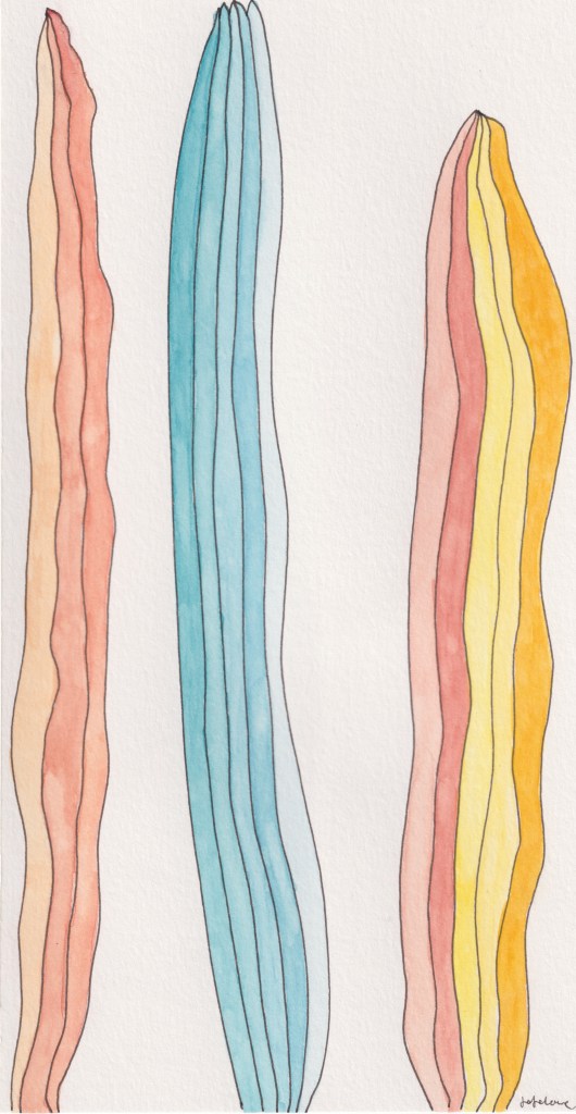 Pour cette pièce, j’avais envie d’expérimenter le mouvement. Les lignes presque droites me font penser à la constance, la routine, que j’évite. Les lignes en mouvement représentent le changement.